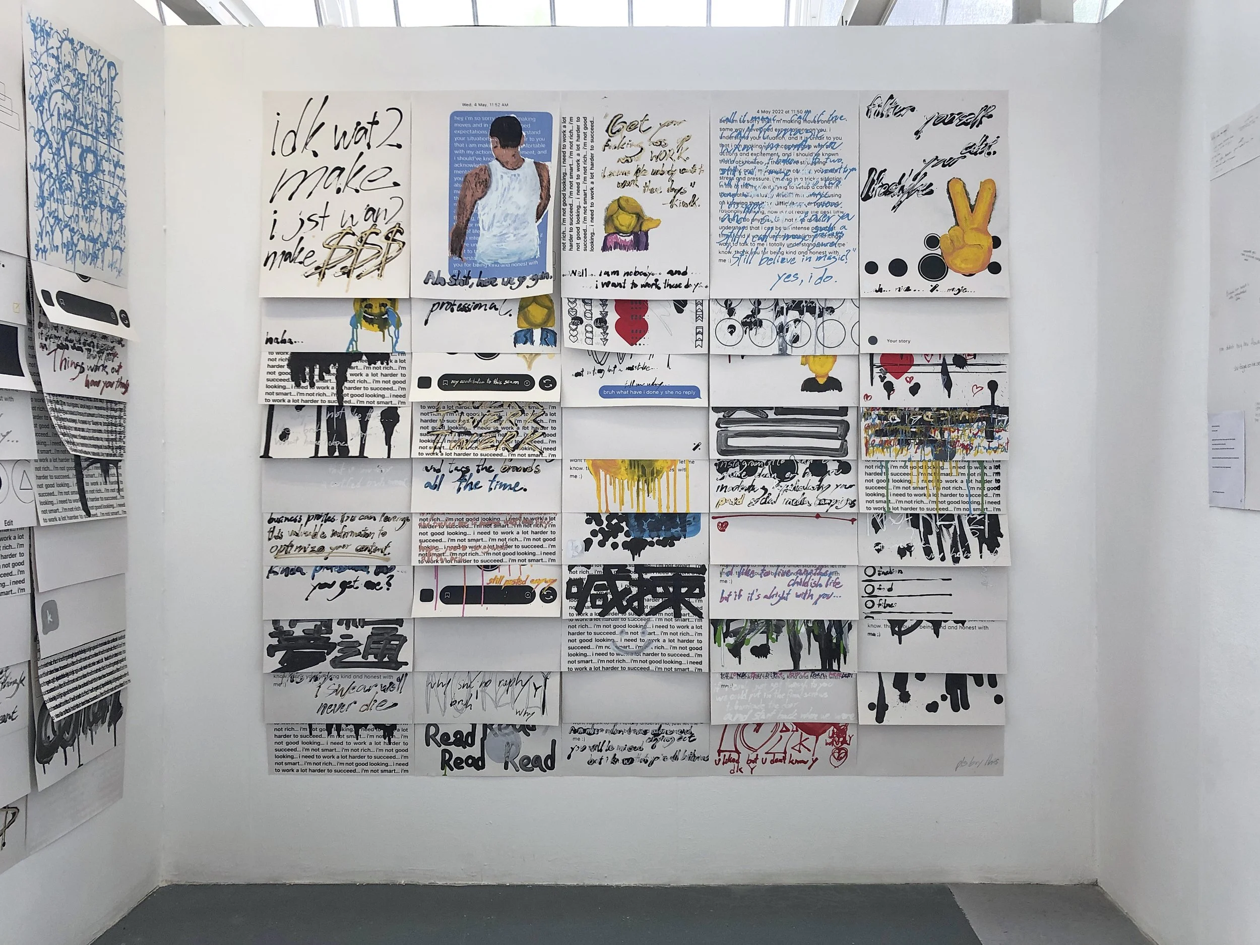 Screen print on cartridge paper, instructions on copier paper, pencil responses